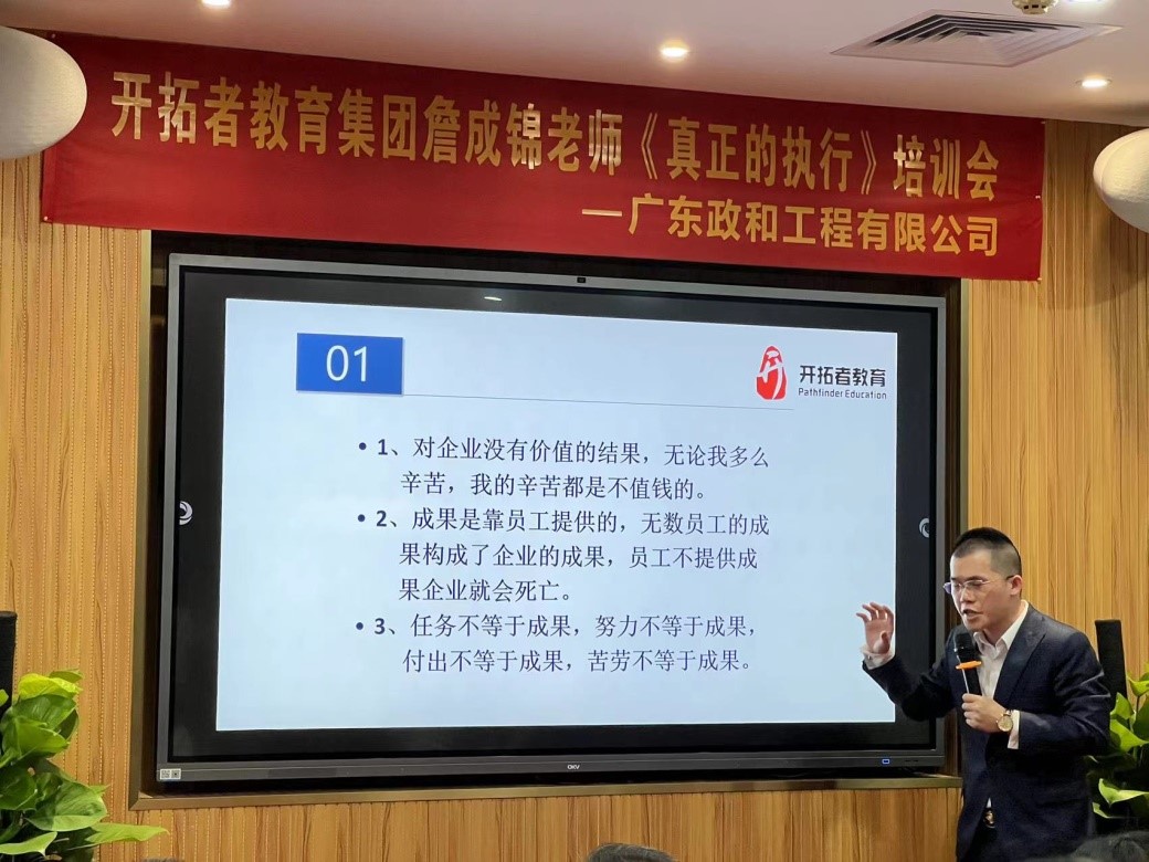 2022年8月5日上午9:00,政和公司邀請了中國企業(yè)人才教育領域馳名品牌——開拓者教育集團資深專家詹成錦老師親臨現(xiàn)場,向公司管理層和部分骨干員工現(xiàn)場傳授《真正的執(zhí)行》。