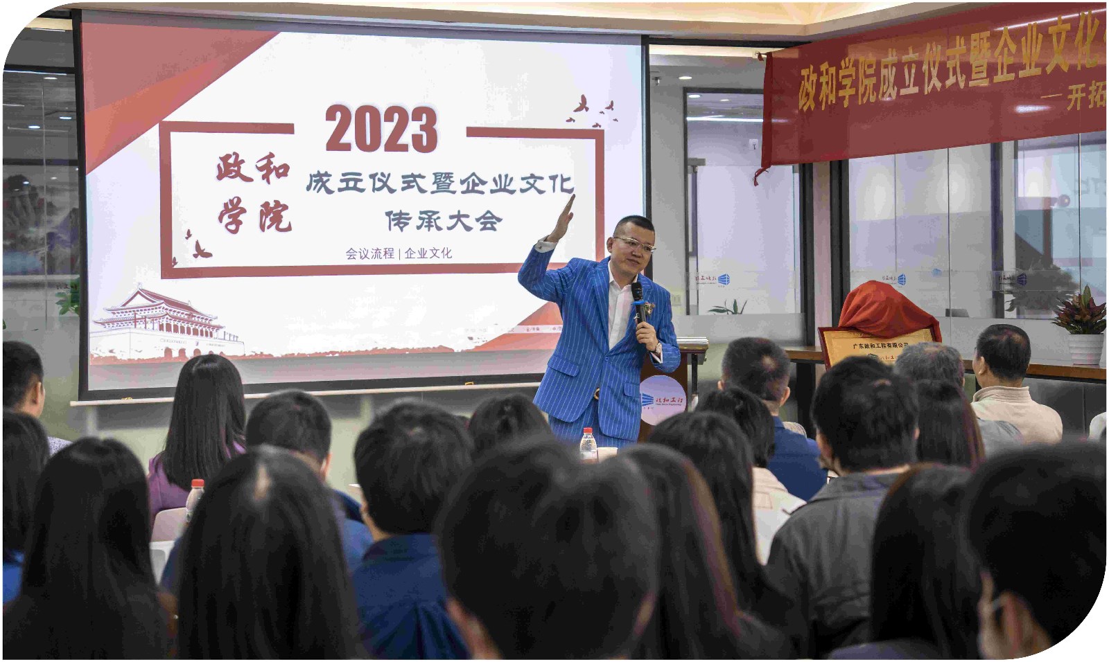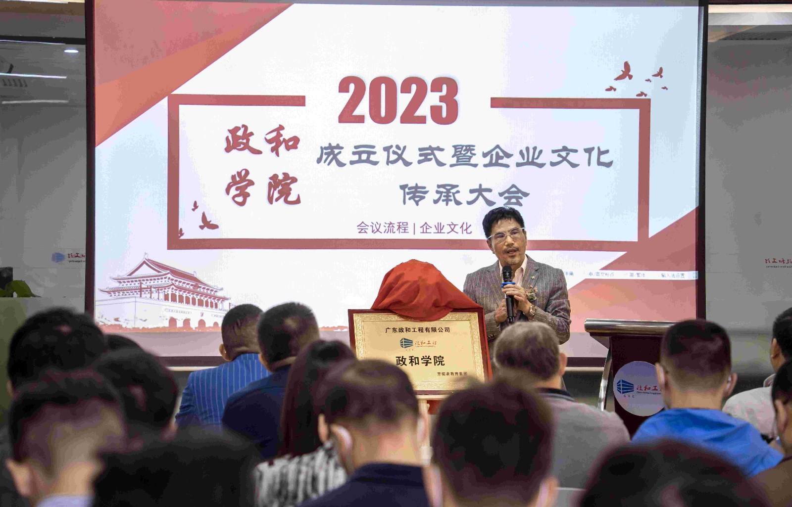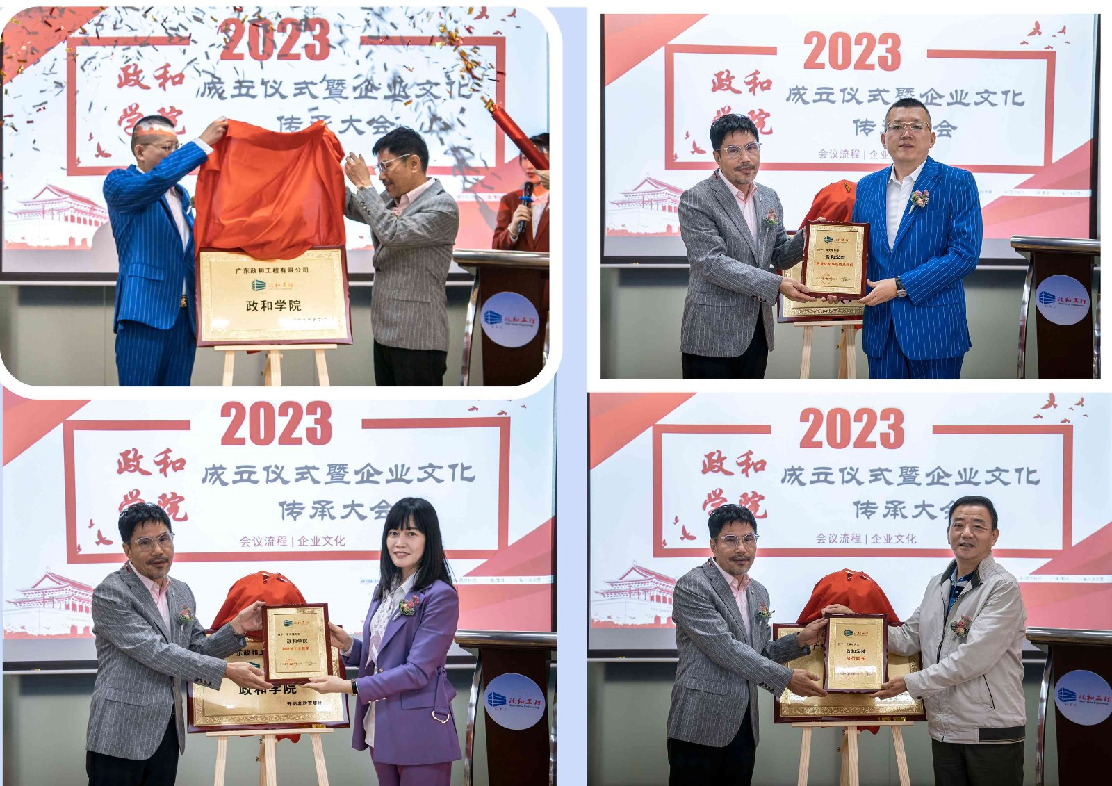 為豐富企業(yè)文化,促進(jìn)員工隊(duì)伍的培育和成長,與開拓者教育集團(tuán)戰(zhàn)略合作共建廣東政和工程有限公司內(nèi)部培訓(xùn)機(jī)構(gòu)---“政和學(xué)院”,于2023年4月10日上午正式掛牌成立。會議在公司一樓綜合會議廳進(jìn)行,全體員工到會。任命董事長李昌環(huán)為學(xué)院院長、王毅峰為執(zhí)行院長、曾天鷹為執(zhí)行副院長,特聘開拓者教育集團(tuán)郭大印老師擔(dān)任名譽(yù)院長兼戰(zhàn)略總顧問。