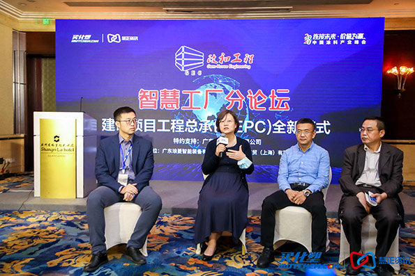 “智慧工廠分論壇”互動論壇由廣東政和工程有限公司董事長李昌環(huán)主持,廣東政和工程有限公司副總經(jīng)理曾天鷹、廣東科迪新材料科技有限公司董事長陸明、德塔顏色商貿(mào)(上海)有限公司顏色技術(shù)經(jīng)理(涂料與塑料)凌冰、買化塑COO陸寧、廣東廣業(yè)寰球工程有限公司原總工程師張劍光、深圳市睿海智電子科技有限公司總經(jīng)理留英博士尹武共同參與。