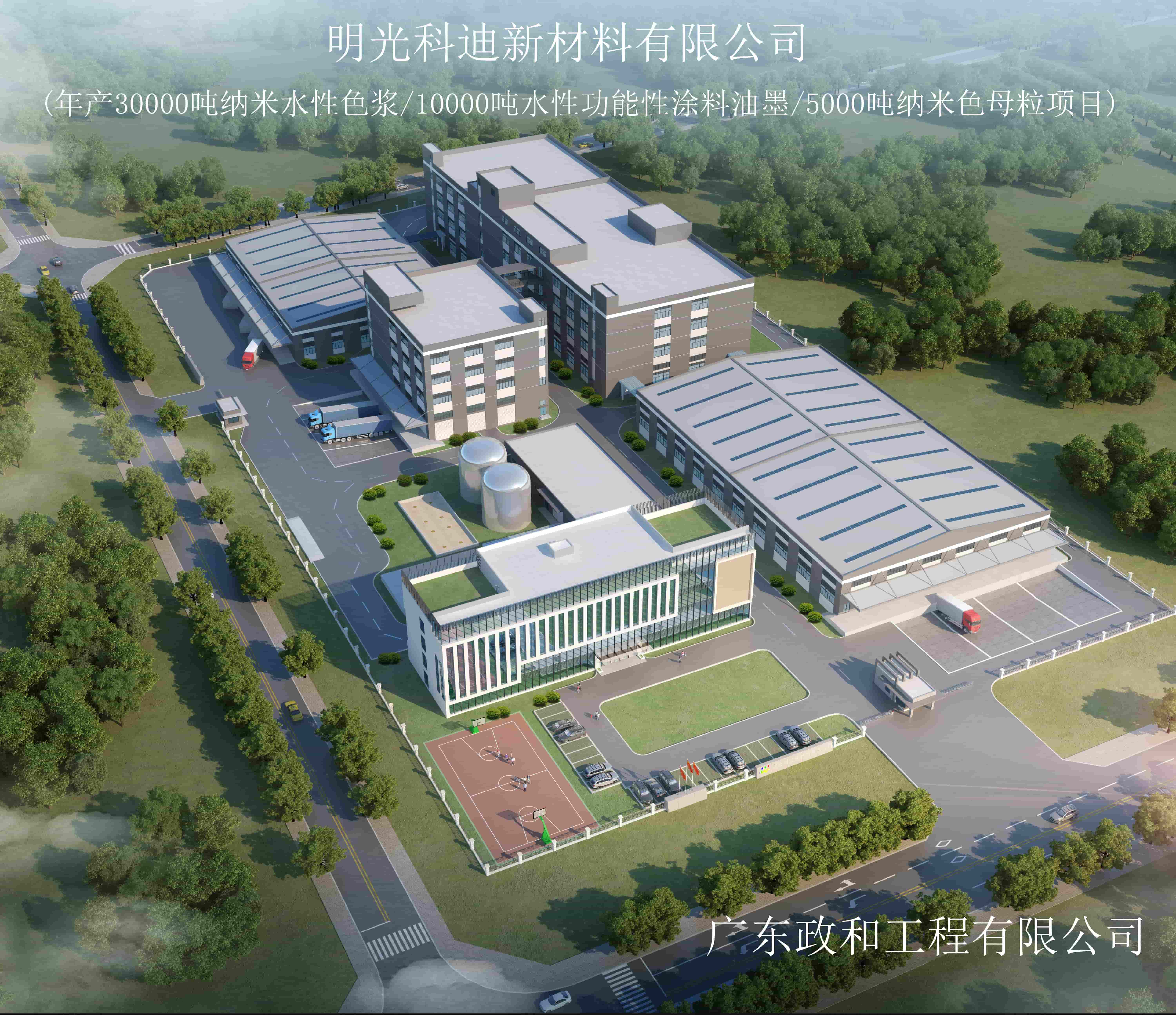 項目總占地面積約為44419.62㎡、總建構(gòu)筑面積約為37000㎡,年產(chǎn)30000噸納米色漿、5000噸色母粒、10000噸水性功能性涂料油墨