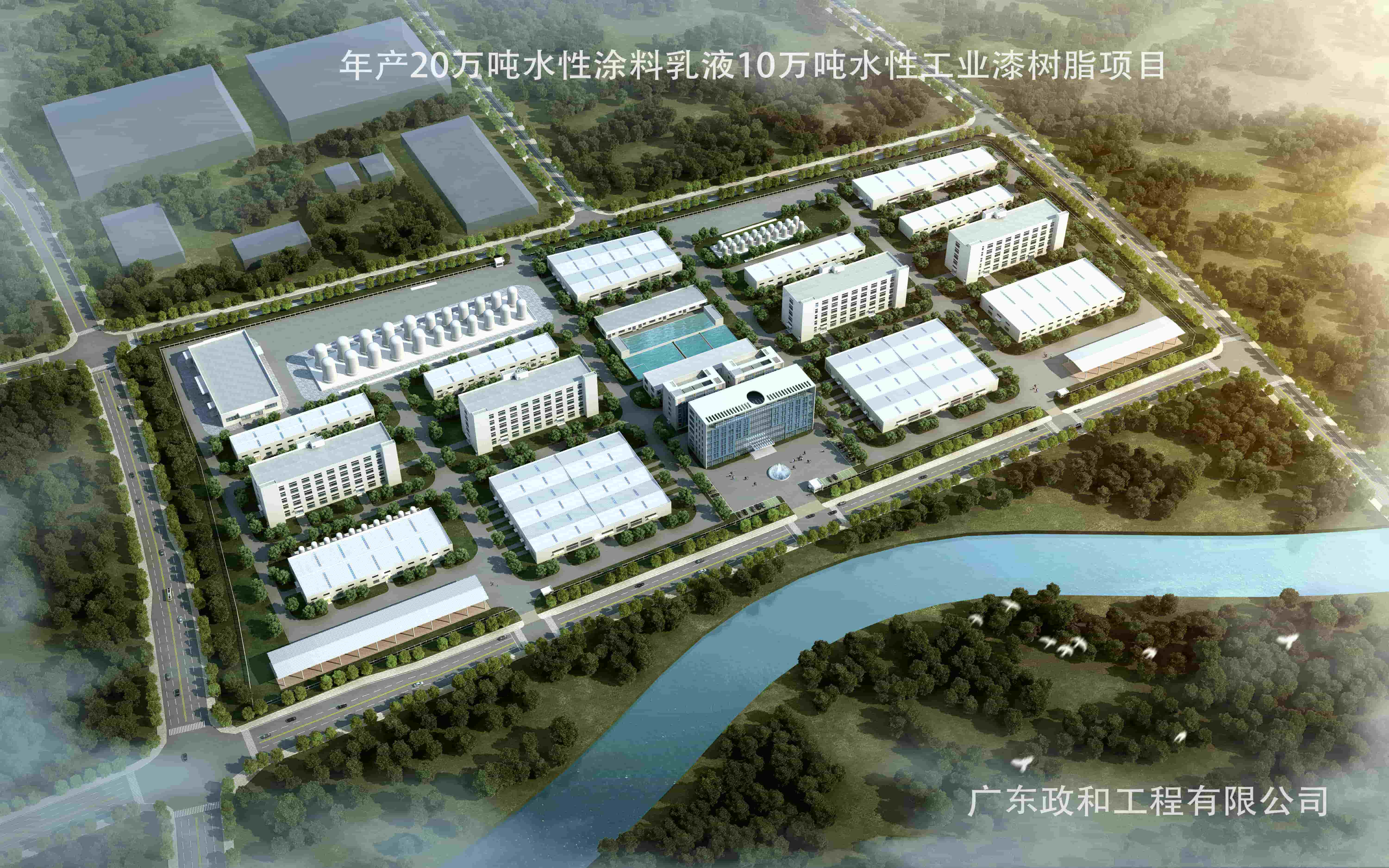項目總占地面積約為269畝,一期總建筑面積約為35000㎡,年產(chǎn)10萬噸乳液;二期規(guī)劃總建筑面積約為33500㎡,年產(chǎn)10萬噸乳液及10萬噸水性樹脂